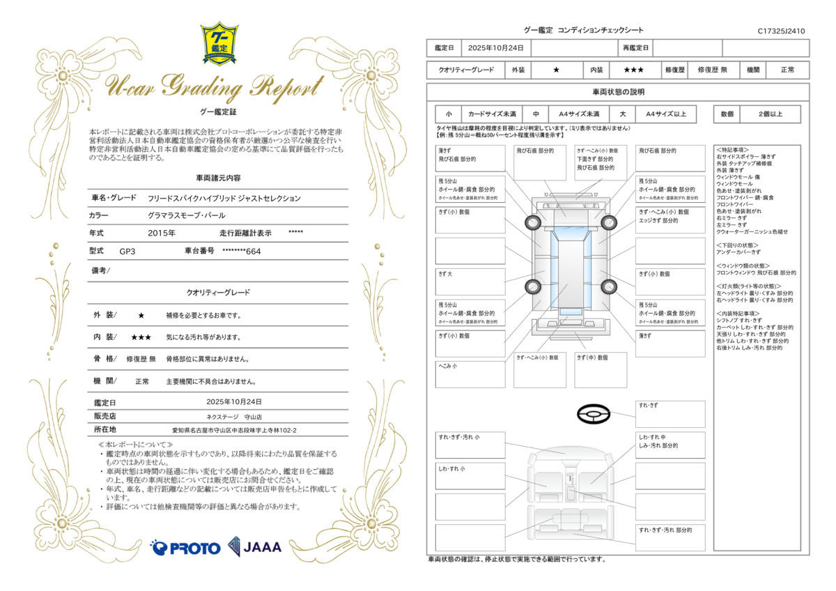 | 保証項目 | 3ヶ月・3000km以内ならエンジン、トランスミッション、ハイブリッド、ステアリング、ブレーキの各機構における主要項目を無償修理(または交換)いたします。 |