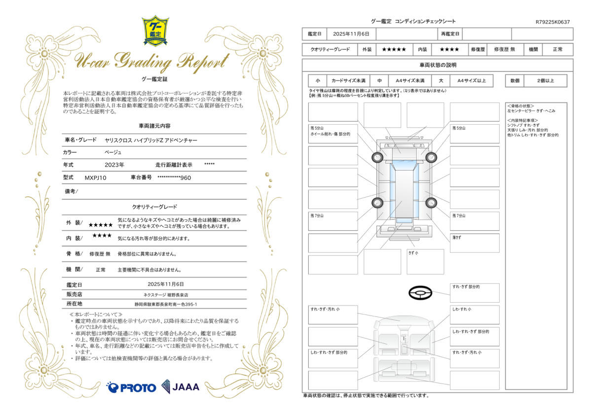 | 保証項目 | 3ヶ月・3000km以内ならエンジン、トランスミッション、ハイブリッド、ステアリング、ブレーキの各機構における主要項目を無償修理(または交換)いたします。 |
