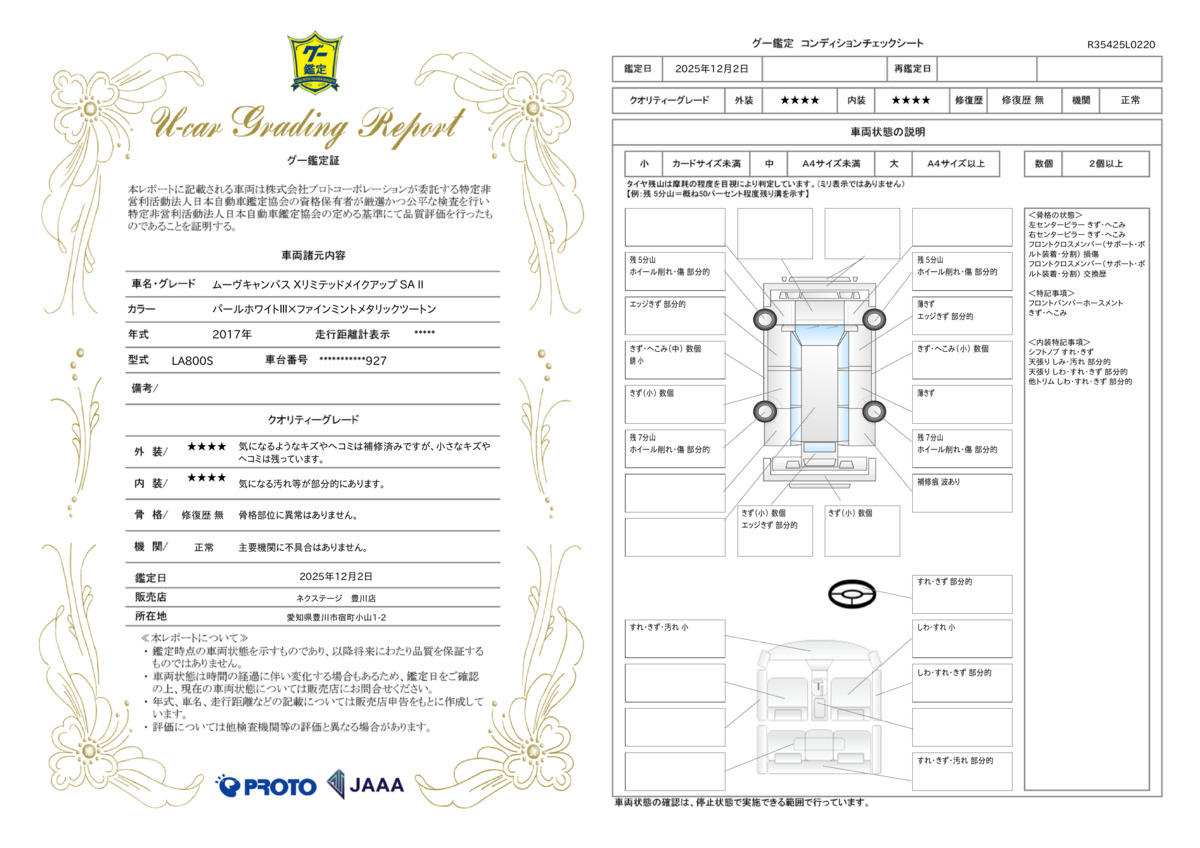 弊社では、全車『修復歴なし』のお車のみ取り扱っております。専任バイヤーによる厳選した仕入れの後、入庫後の車両チェックを行い、ネクステージが認定した高品質な中古車をご提供しております。 15