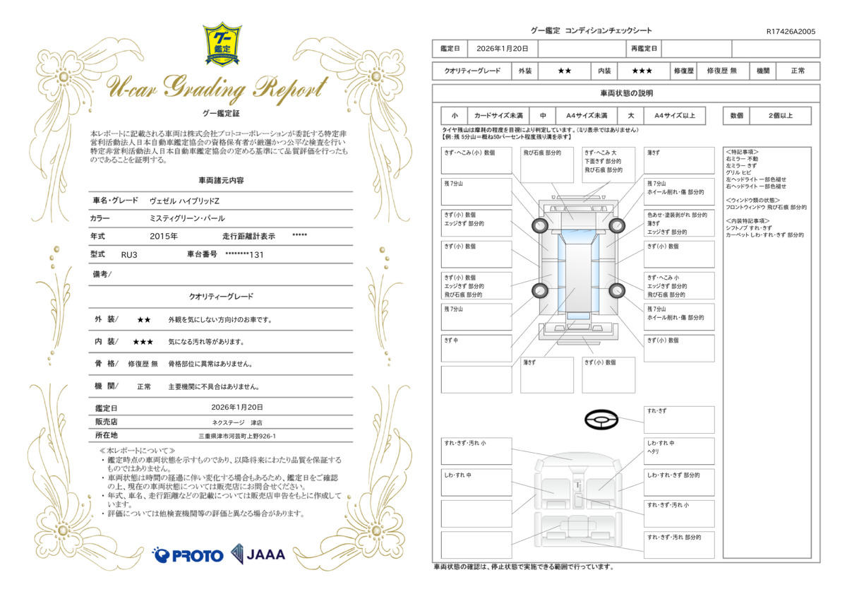 | 保証項目 | 3ヶ月・3000km以内ならエンジン、トランスミッション、ハイブリッド、ステアリング、ブレーキの各機構における主要項目を無償修理(または交換)いたします。 |