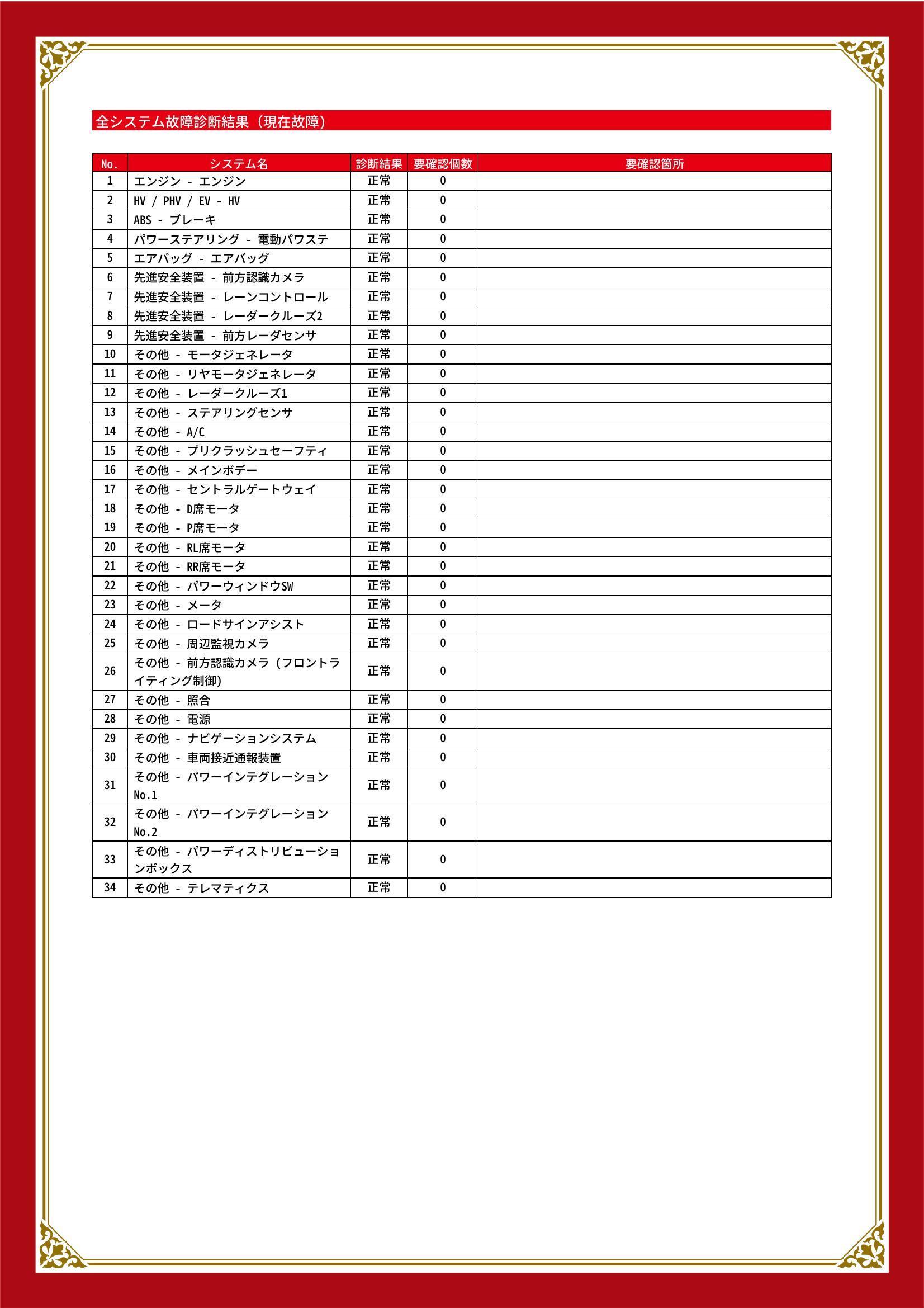 計60項目 エンジン/ミッション/ブレーキ/ナビ・エアコン等電装部品 60項目約5000部品ものパーツが保証対象になります。※消耗品等保証対象外部品あります。詳しくはスタッフまで |
