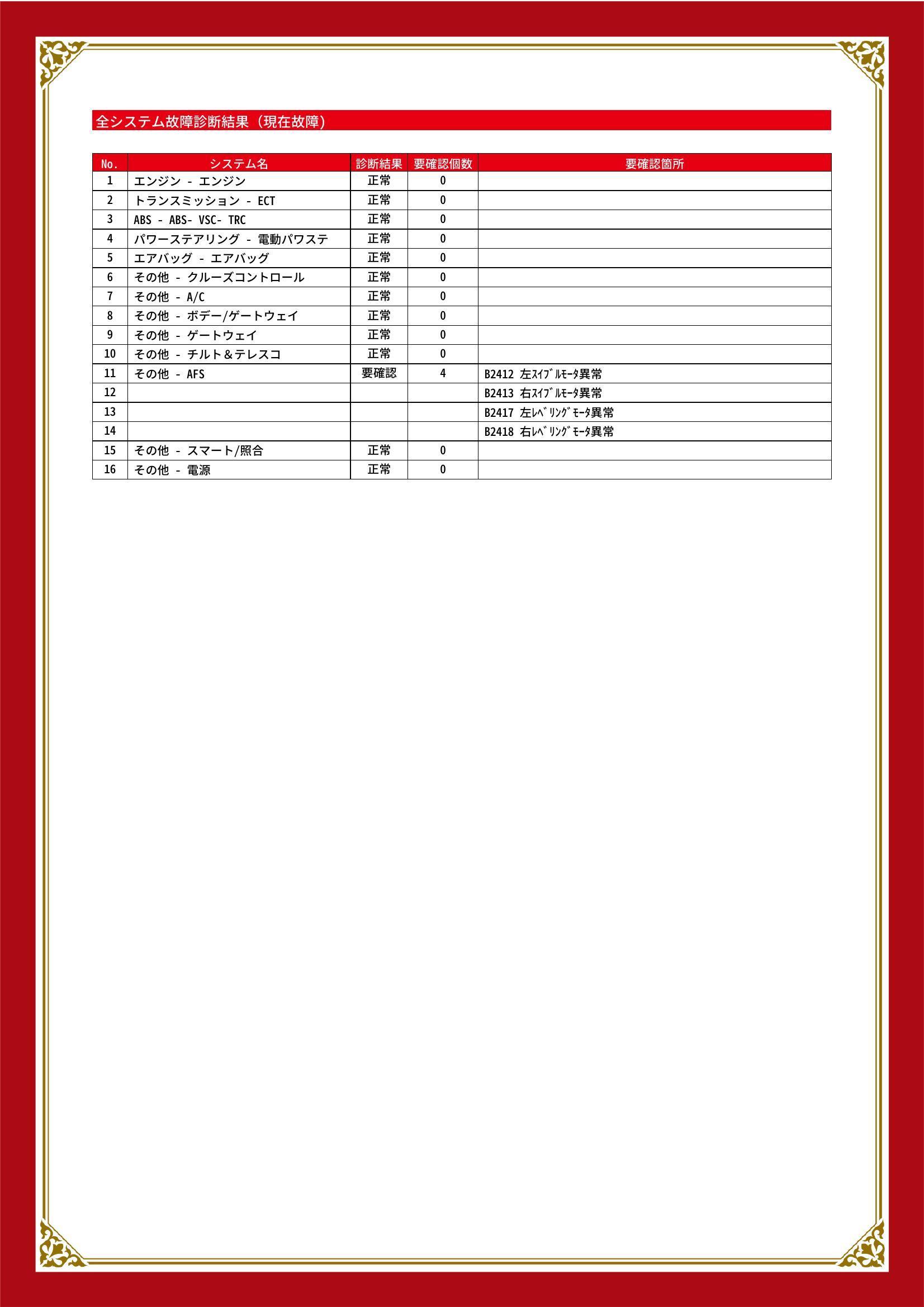 計50項目 別途費用にて約300項目のゴールド保証もご用意しております! |