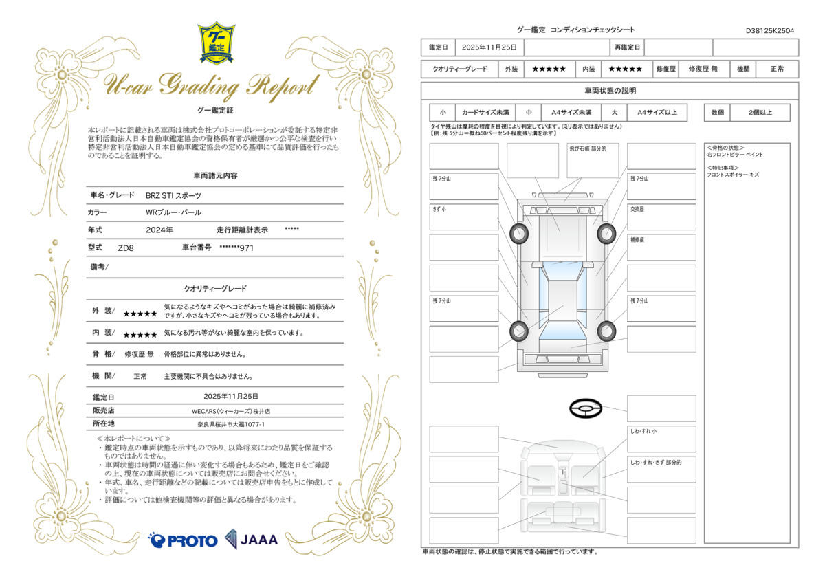 | 保証修理受付先 | 全国のWECARSで修理受付可能です。詳細はスタッフまでお気軽にお問い合わせ下さい。 |