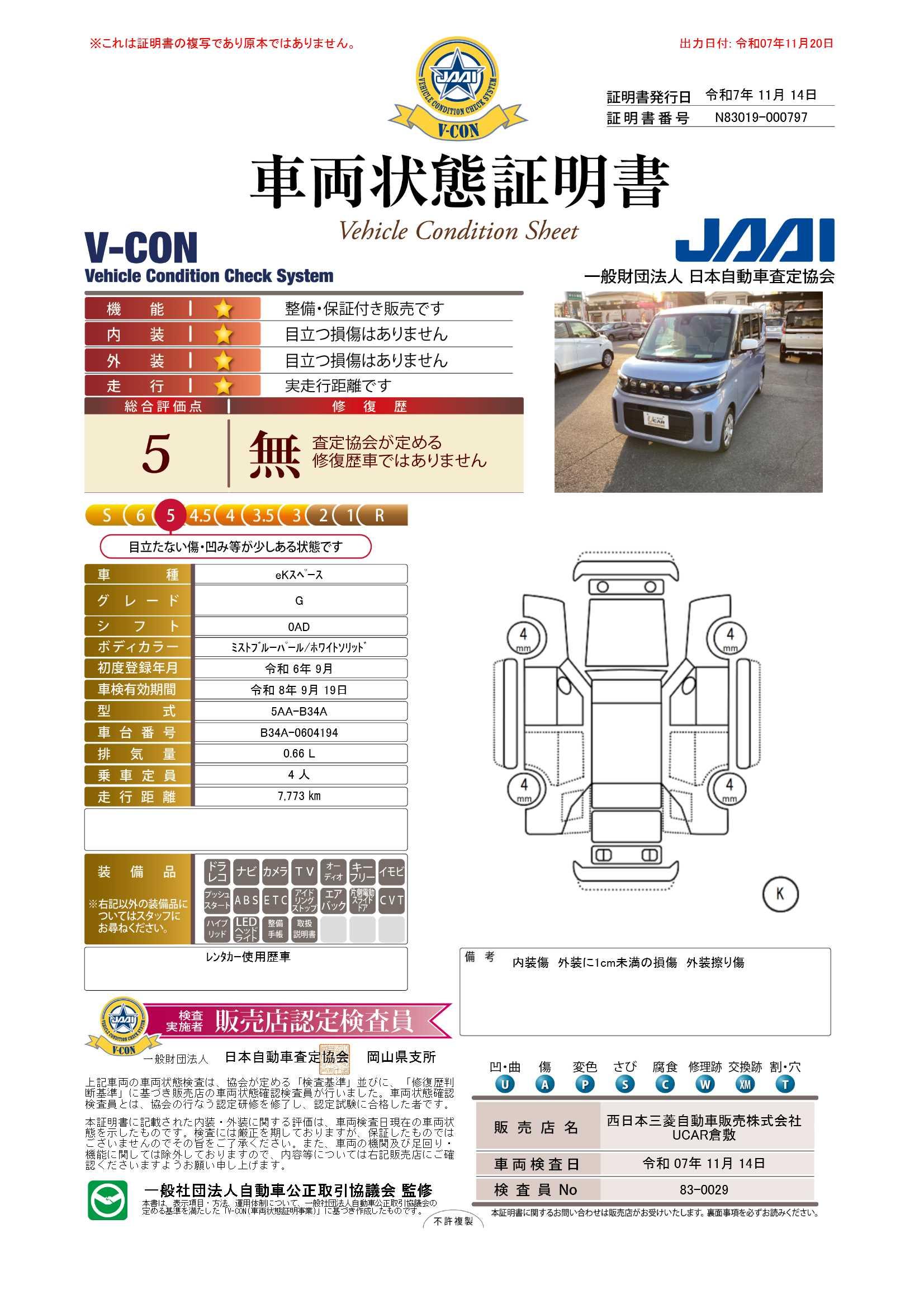 修復歴・内外装・機能の状態・走行距離などをチェックし、修復歴の無い車両を「三菱認定UCAR」としています 25