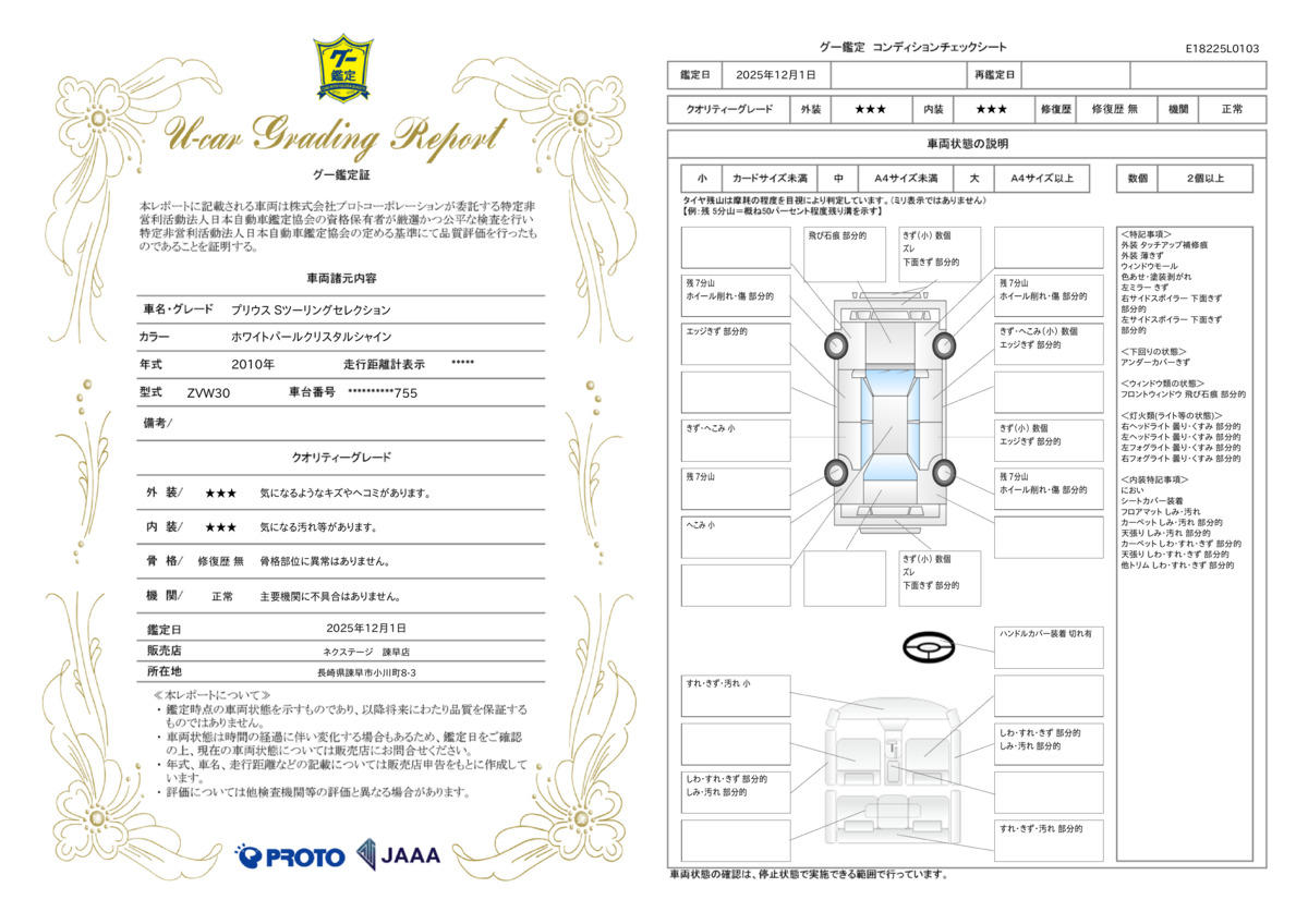 弊社では、全車『修復歴なし』のお車のみ取り扱っております。専任バイヤーによる厳選した仕入れの後、入庫後の車両チェックを行い、ネクステージが認定した高品質な中古車をご提供しております。 14