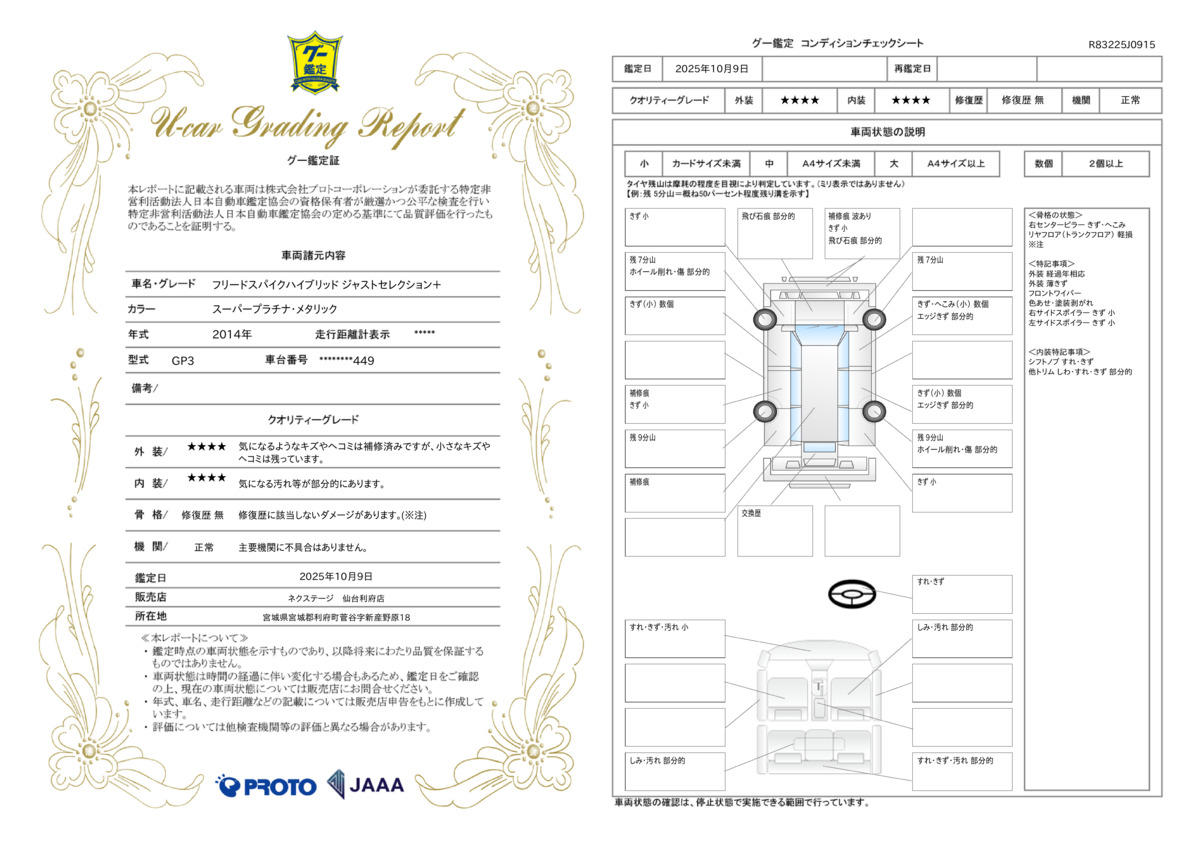 保証項目 | 3ヶ月・3000km以内ならエンジン、トランスミッション、ハイブリッド、ステアリング、ブレーキの各機構における主要項目を無償修理(または交換)いたします。 |
