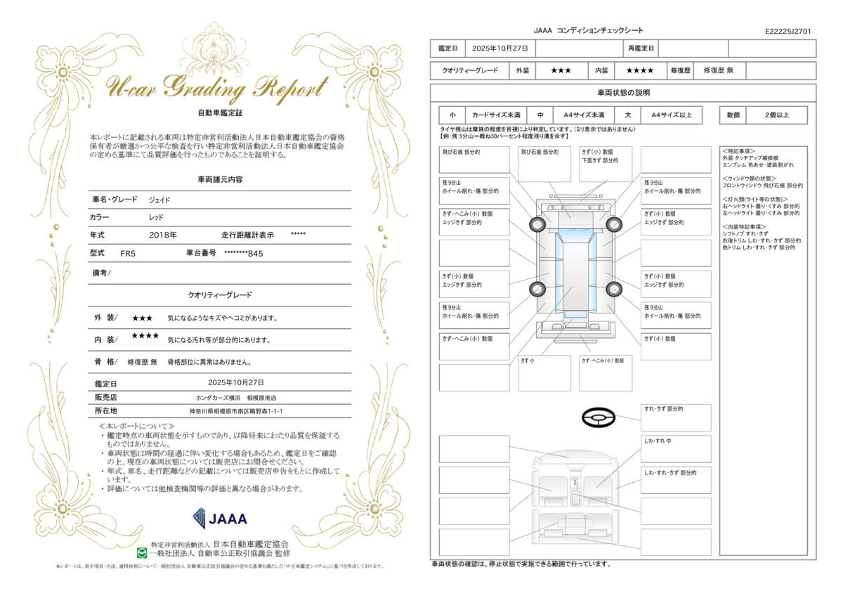 ジェイド RS ホンダセンシング ワンオーナー 禁煙車 0504769A30251102W001 23