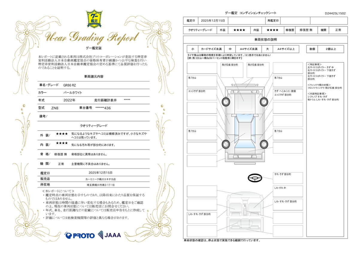 計600項目 社外品、消耗品、内外装のキズ等を除く、およそ600項目の部位が対象です。詳しくはスタッフまでご確認ください。 |