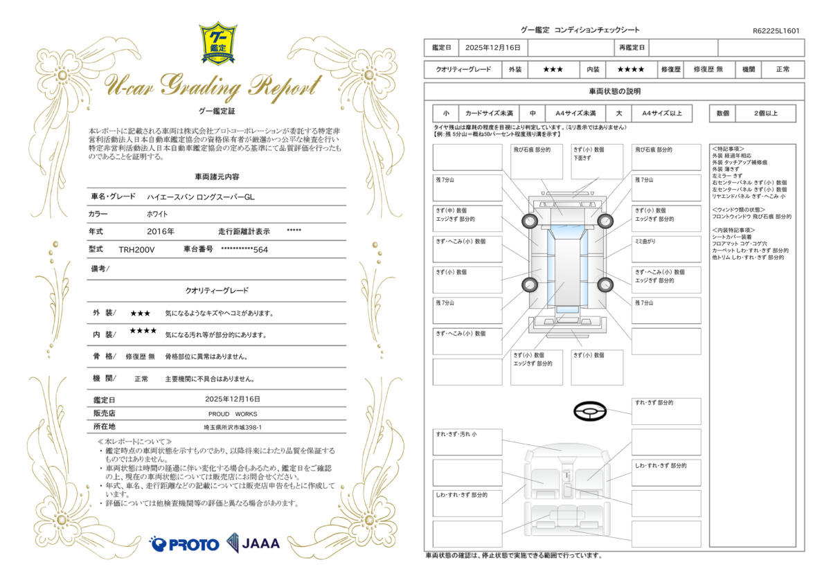 | 保証について | [保証付]:3ヶ月・3000km ※いずれか早い時期が保証適用の条件となります。 |