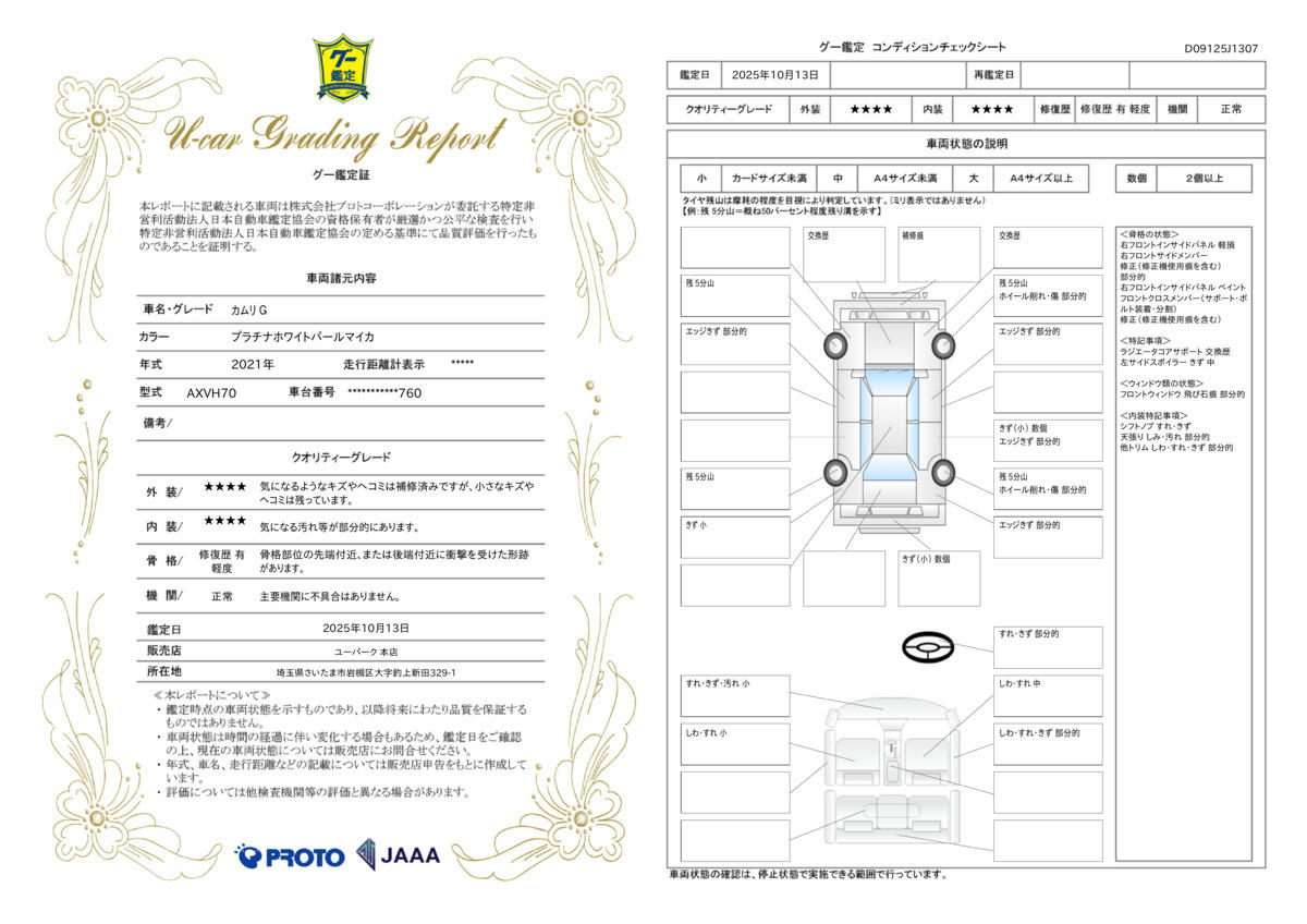[保証付]:12ヶ月・走行無制限 全国各地の認証・指定工場にて保証が受けられます。保証料は本体価格に含まれております。また、お客様のご希望に合わせてさらに充実した保証プランをご用意しております。期間、範囲につきましてはご相談下さい。 |