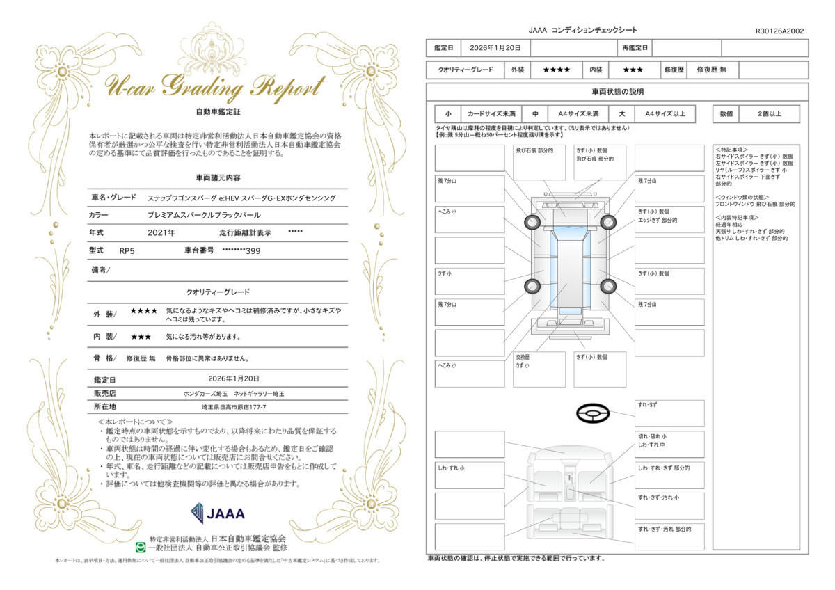修復歴 なし 車体色 プレミアムスパークルブラックP