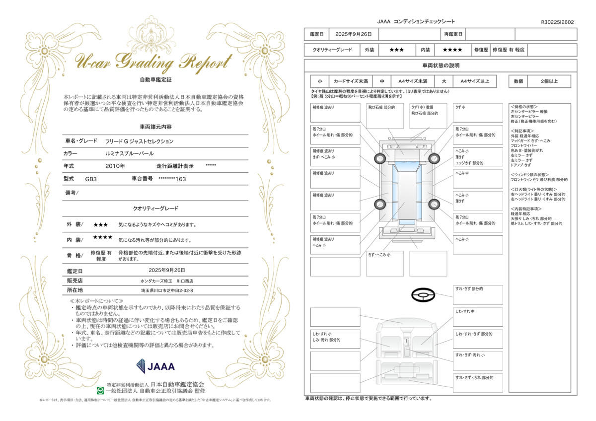Honda認定中古車です。修復歴がない車両に限定、さらに第三者機関の車両状態証明書をすべての車両で取得しております。U−Select Premiumは初度登録から5年・5万km以内で無料で保証が2年付きになります。