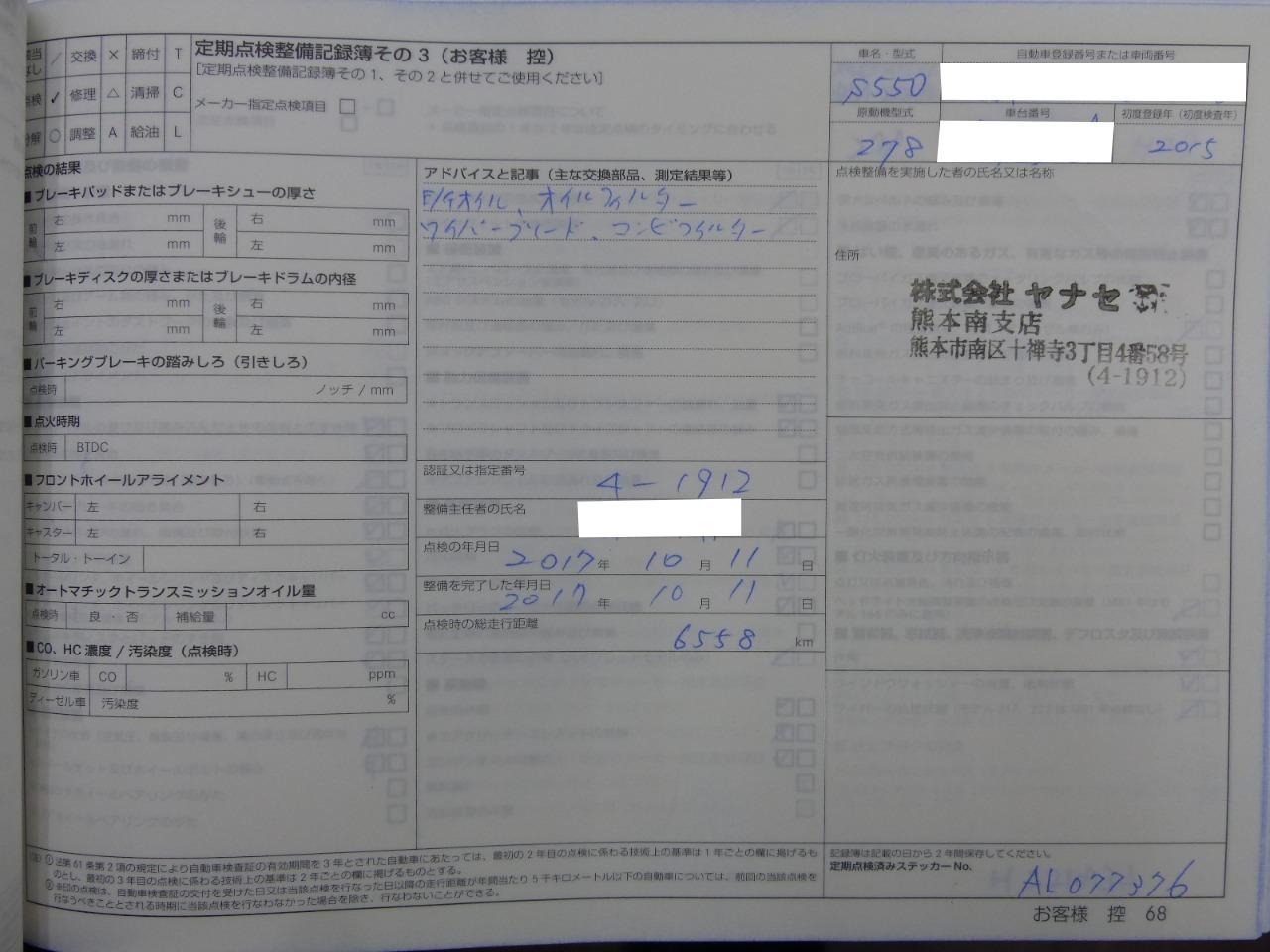 装備内容備考:ACコンプレッサー内部のコーティング剤、マイクロロンAFを施工します。コンプレッサー内部摩耗を低減し寿命を延長、さらには燃費アップも期待できます。夏場は冷却効率が向上し、よく冷えます。 |