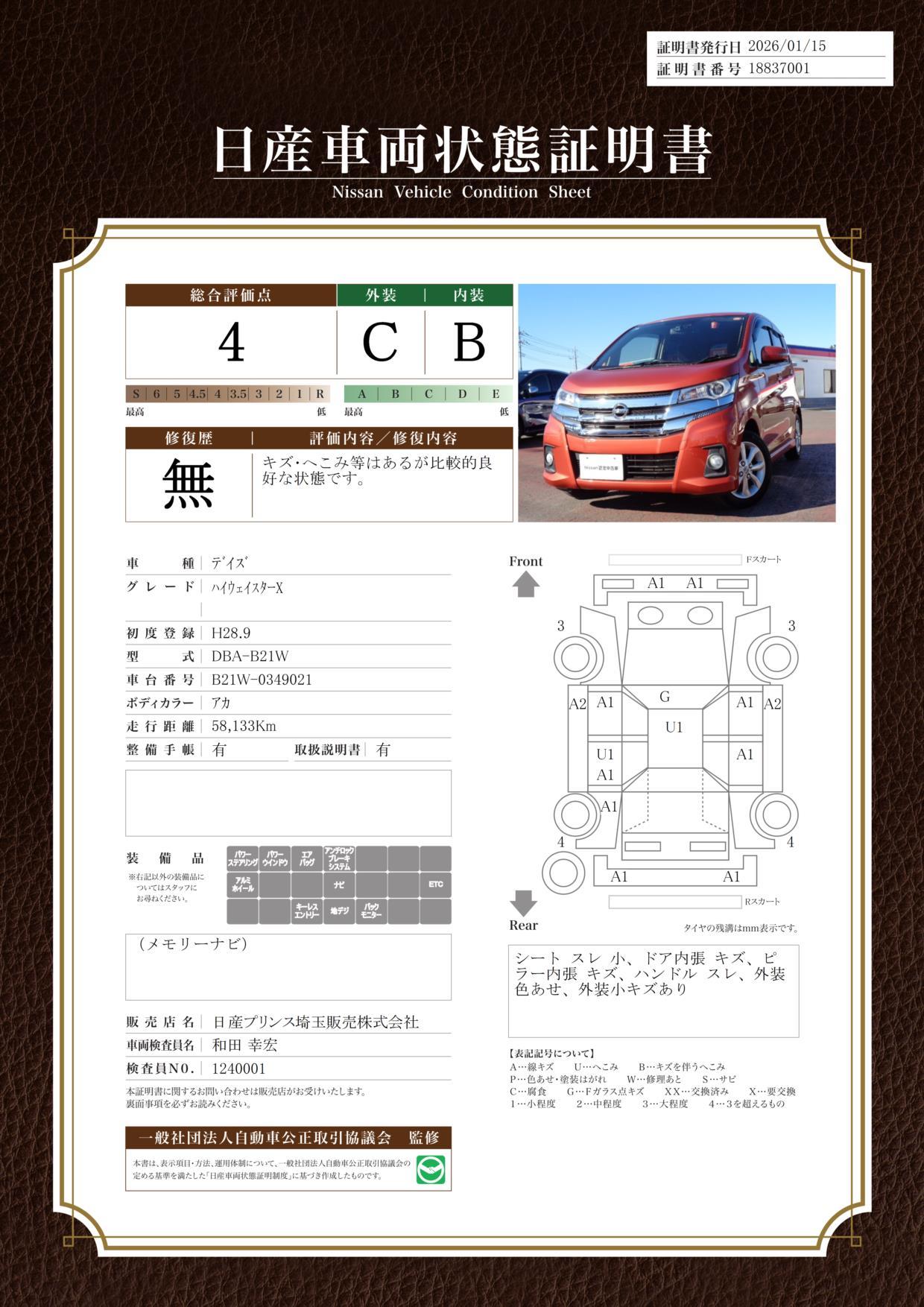 ●全車保証付き!全国3000ヵ所の日産サービス工場で修理可能です●1年間走行距離無制限、無料保証では含まれることが少ない バッテリーも保証対象となります。●納車後1ヵ月または1000Kmの無料点検も受けていただけます。●ワイド保証ライト(3ヶ月保証、30万円未満)