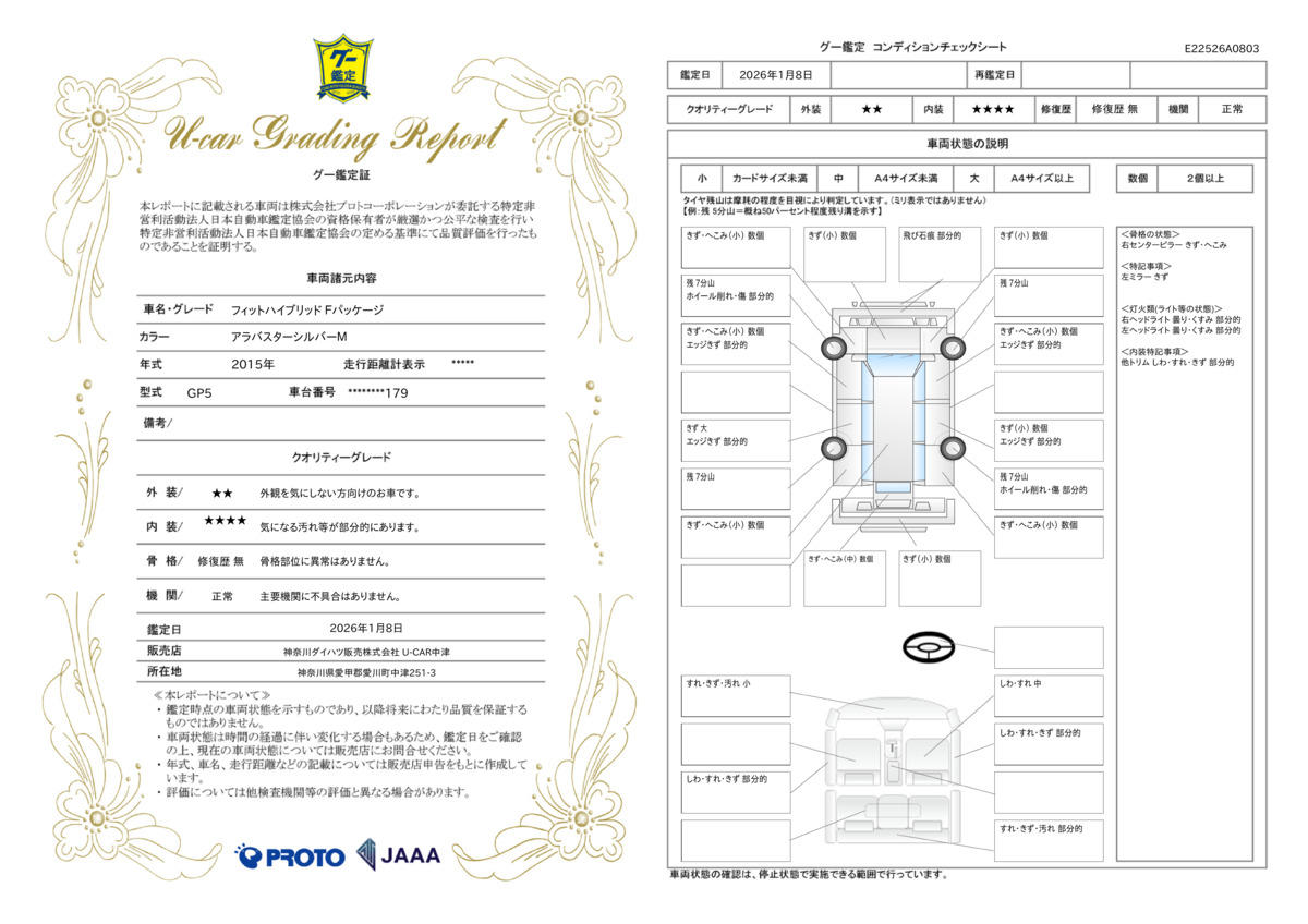 | 保証について | [保証付]:12ヶ月・20000km ※いずれか早い時期が保証適用の条件となります。 |