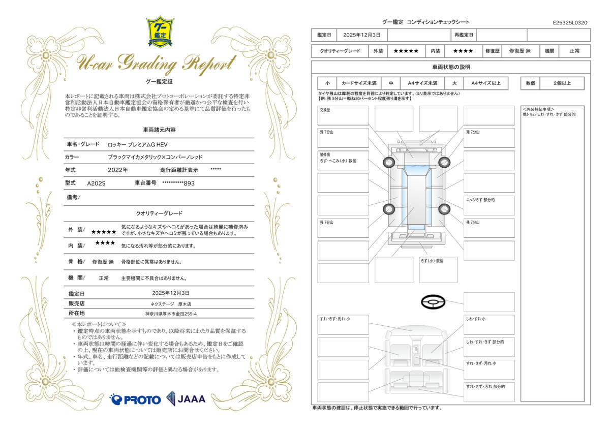 | 保証項目 | 3ヶ月・3000km以内ならエンジン、トランスミッション、ハイブリッド、ステアリング、ブレーキの各機構における主要項目を無償修理(または交換)いたします。 |