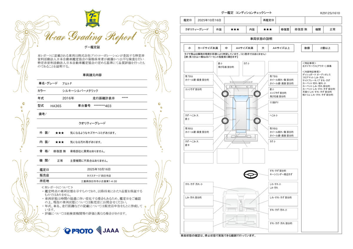 保証項目 | 3ヶ月・3000km以内ならエンジン、トランスミッション、ハイブリッド、ステアリング、ブレーキの各機構における主要項目を無償修理(または交換)いたします。 |