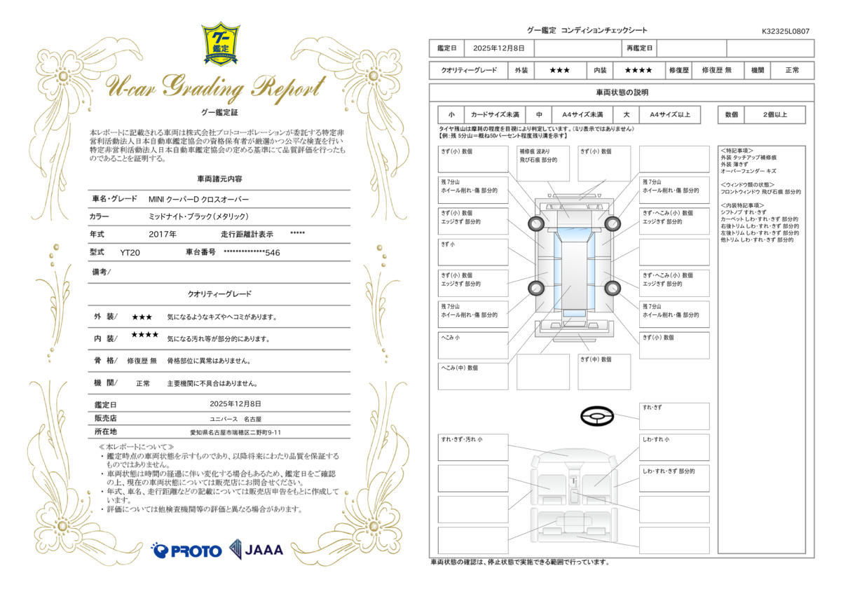 | 保証項目 | 1ヶ月以内なら走行距離無制限にてエンジン、トランスミッション、ハイブリッド、ステアリング、ブレーキの各機構における主要項目を無償修理(または交換)いたします。 |
