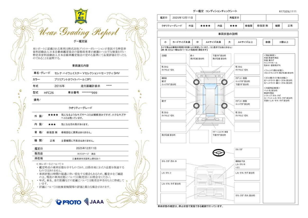 | 保証項目 | 3ヶ月・3000km以内ならエンジン、トランスミッション、ハイブリッド、ステアリング、ブレーキの各機構における主要項目を無償修理(または交換)いたします。 |