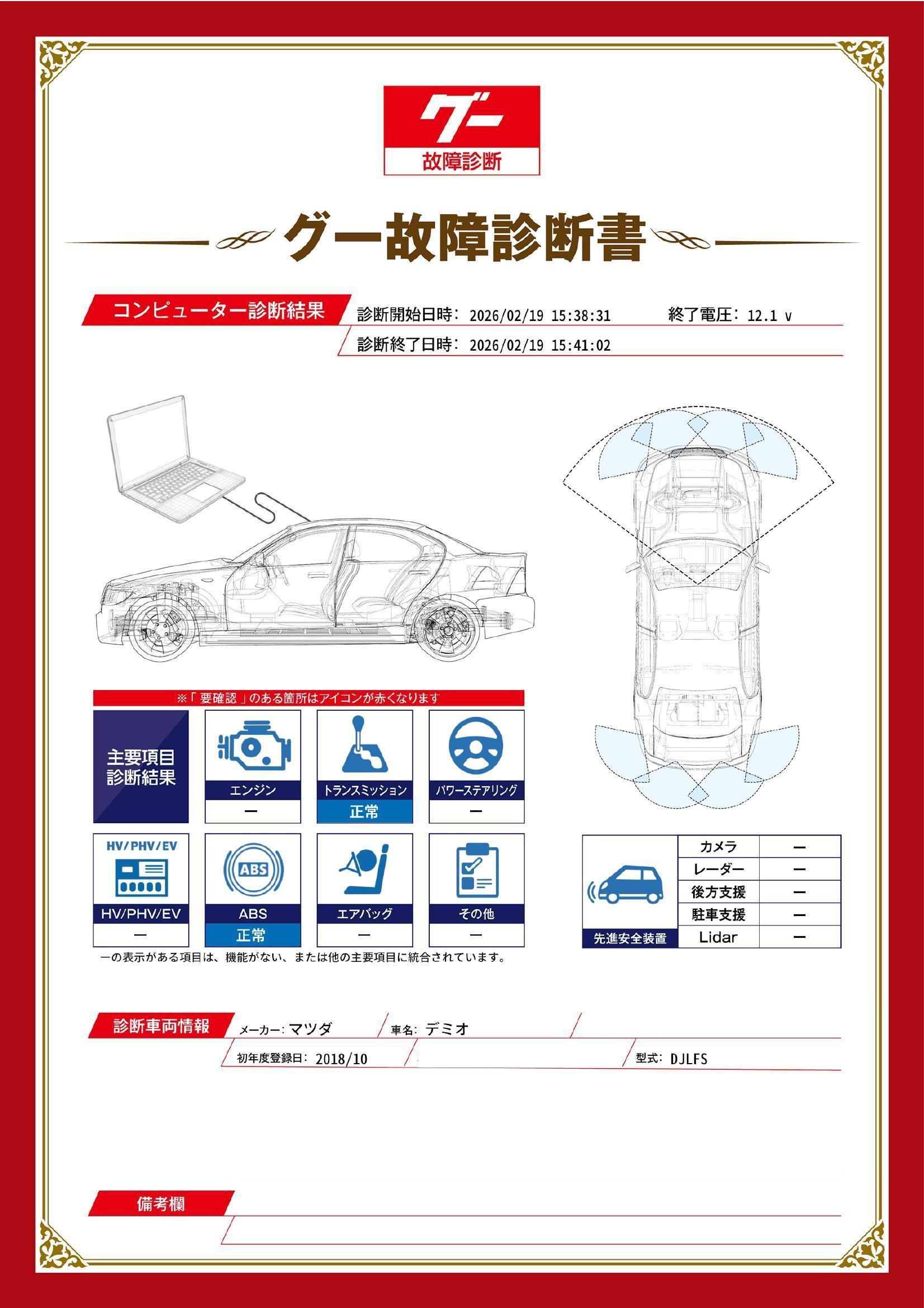 | 保証項目 | 納車後1ヶ月・1000km以内は36機構・343項目を保証いたします。詳しくは販売店までお問い合わせ下さい。 |