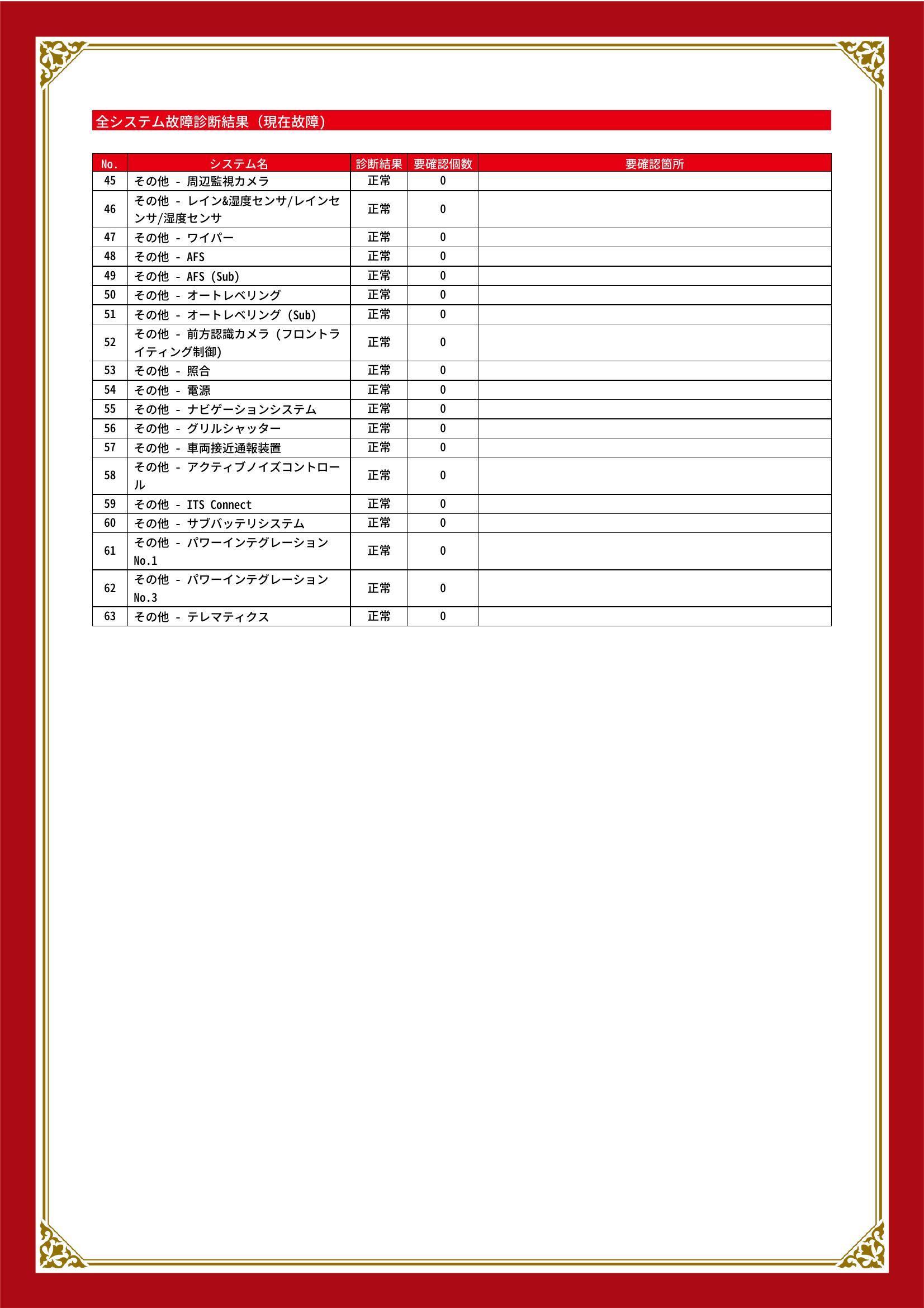 | 保証項目 | 3ヶ月・3000km以内ならエンジン、トランスミッション、ハイブリッド、ステアリング、ブレーキの各機構における主要項目を無償修理(または交換)いたします。 |