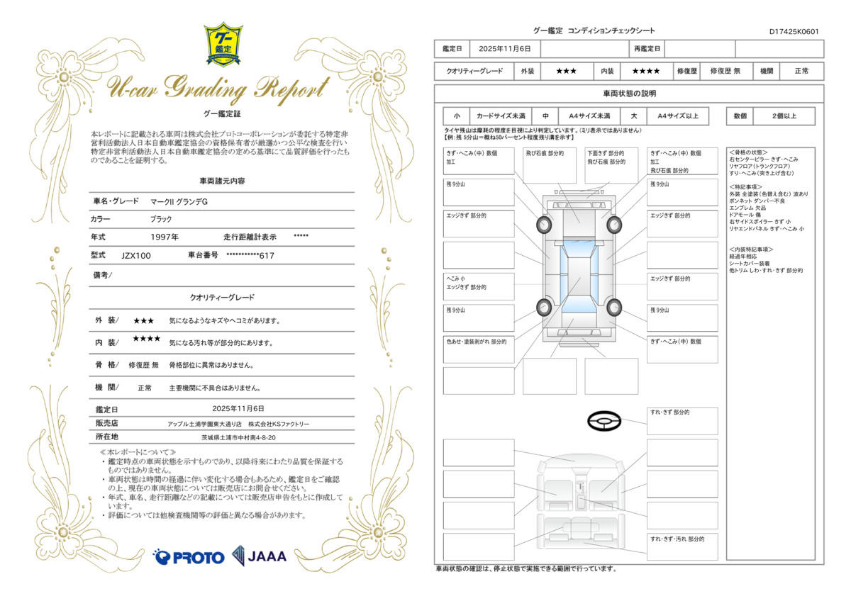 内外装部品を除く機能部品をすべて保証いたします。納車から1ヶ月もしくは1000Kmどちらか早い方の保証です。 |