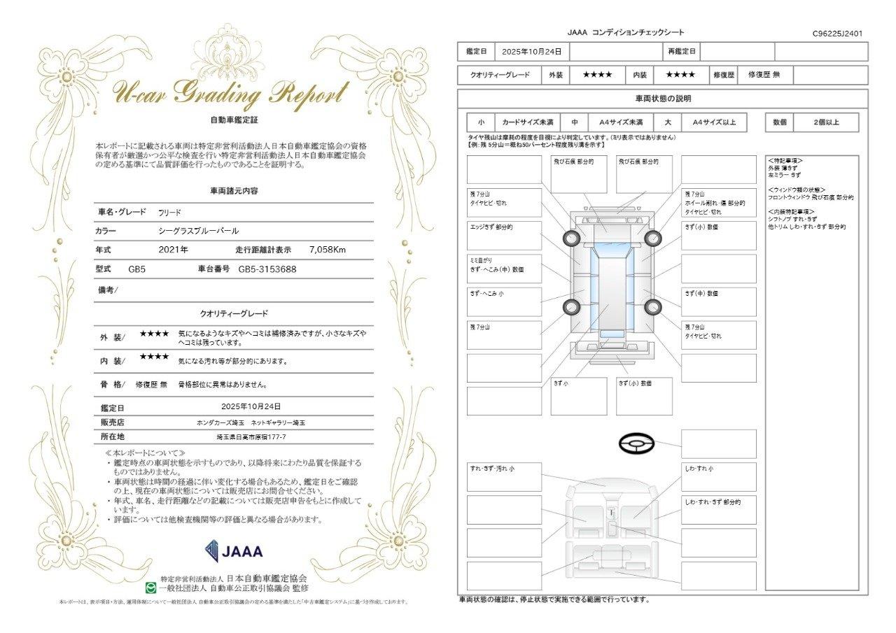 Honda認定中古車です。修復歴がない車両に限定、さらに第三者機関の車両状態証明書をすべての車両で取得しております。U−Select Premiumは初度登録から5年・5万km以内で無料で保証が2年付きになります。