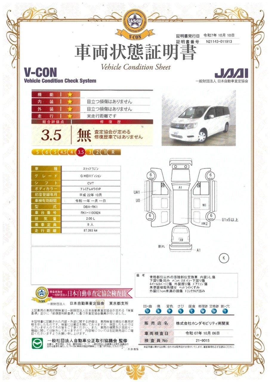 ステップワゴン GHDDナビスマートスタイルエディション 禁煙車 HDDナビ スマートキー 0550538A30251026W003 1