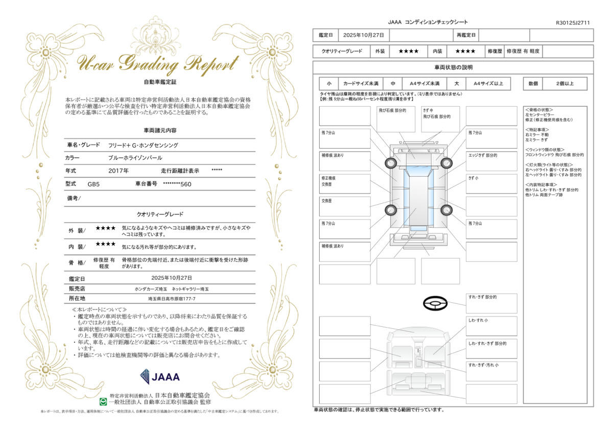 こちらのフリード+は左側センターピラーを修正していますが、綺麗に直しておりますので走行に支障はございません。安心してお乗りいただけます。 2