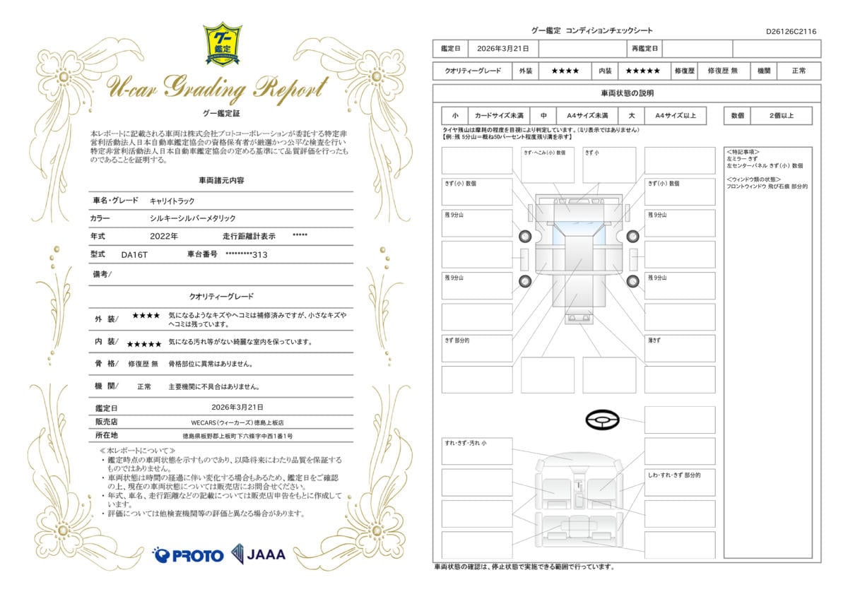 | 保証項目 | 納車後1ヶ月・1000km以内は36機構・343項目を保証いたします。詳しくは販売店までお問い合わせ下さい。 |
