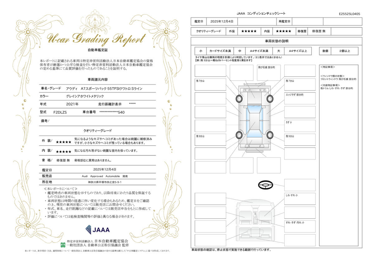[保証付]:12ヶ月・走行無制限 初年登録3年以上の車両に1年間のAAA保証を付帯します。またAudi認定中古車全てのグレードで延長保証1年または2年に有償にてご加入頂けます |