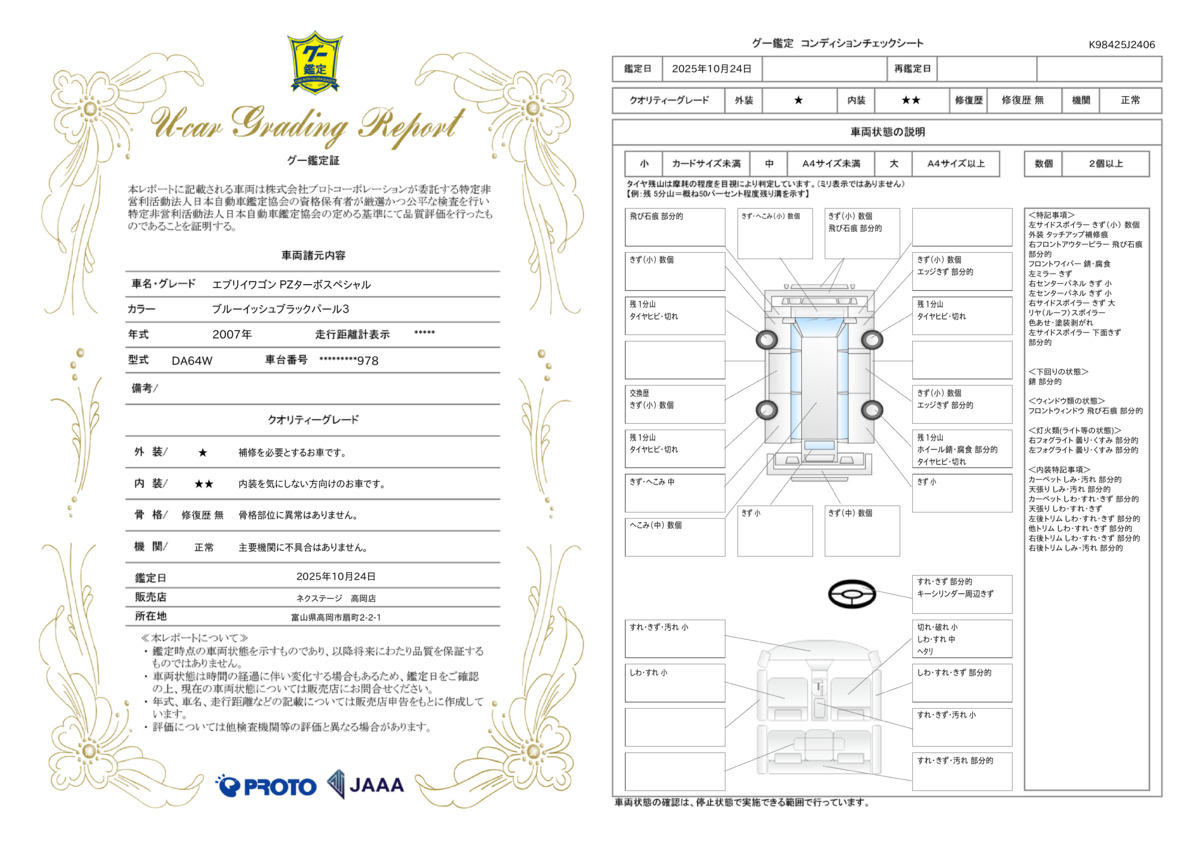 [保証付]:3ヶ月・3000km ※いずれか早い時期が保証適用の条件となります。 ●期間中は何度でも使用可 ※累積上限金額あり ●全国の店舗で対応可 ●最長10年の有料保証もご用意。充実の保証範囲(401項目)1・2・3・10年からお選びいただけます※車両により加入条件が異なります |