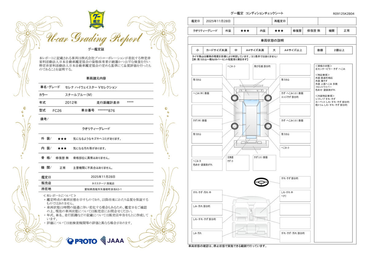 弊社では、全車『修復歴なし』のお車のみ取り扱っております。専任バイヤーによる厳選した仕入れの後、入庫後の車両チェックを行い、ネクステージが認定した高品質な中古車をご提供しております。 16