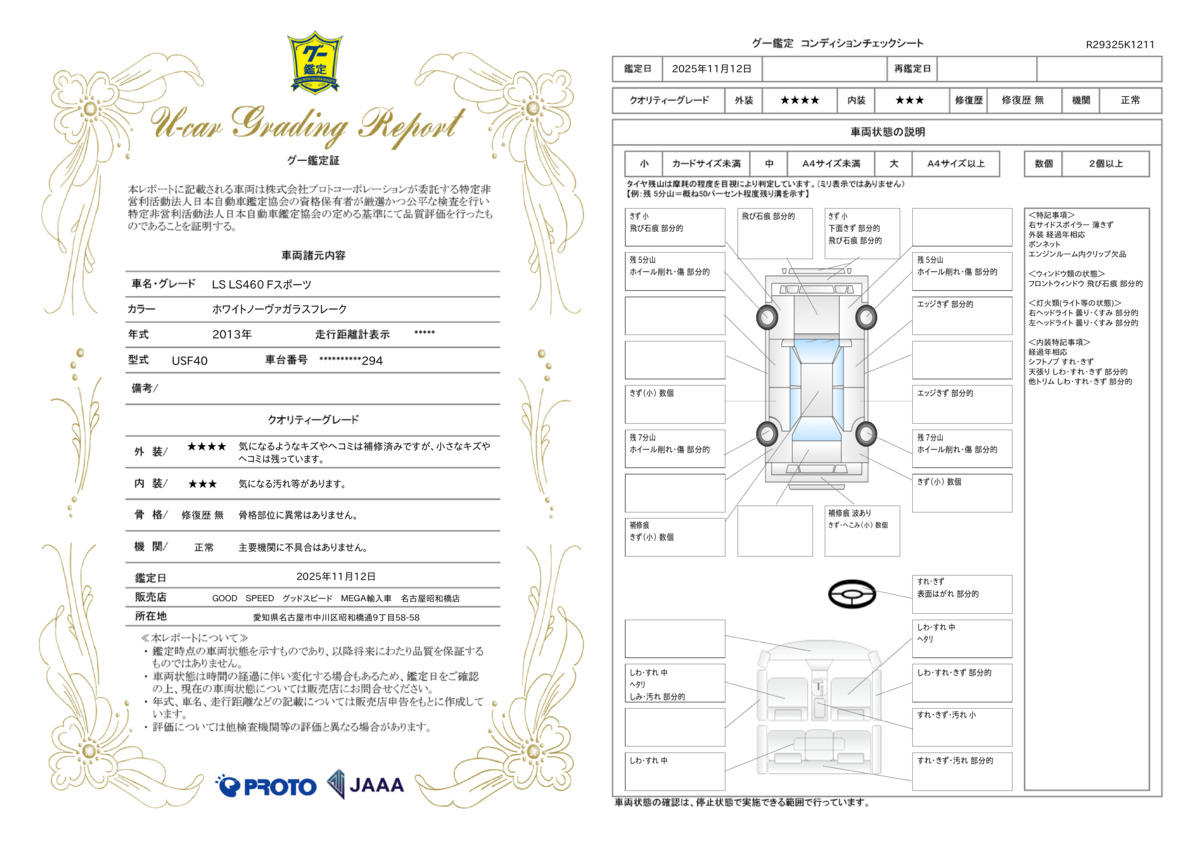 [保証付]:1ヶ月・1000km ※いずれか早い時期が保証適用の条件となります。 業界高水準、最長保証期間はなんと15年。保証項目406部位。任意による1年毎の更新が可能な新しいアフターサービス「GOOD SPEEDオリジナル プレミアムワランティー」をご用意させて頂いております。 |