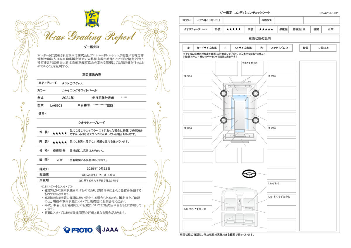 [保証付]:1ヶ月・1000km ※いずれか早い時期が保証適用の条件となります。 納車後1ヶ月・1000km以内は36機構・343項目を保証いたします。詳しくは販売店までお問い合わせ下さい。 |