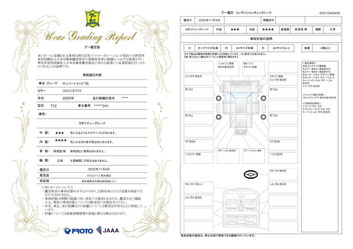 | 保証項目 | 3ヶ月・3000km以内ならエンジン、トランスミッション、ハイブリッド、ステアリング、ブレーキの各機構における主要項目を無償修理(または交換)いたします。 |