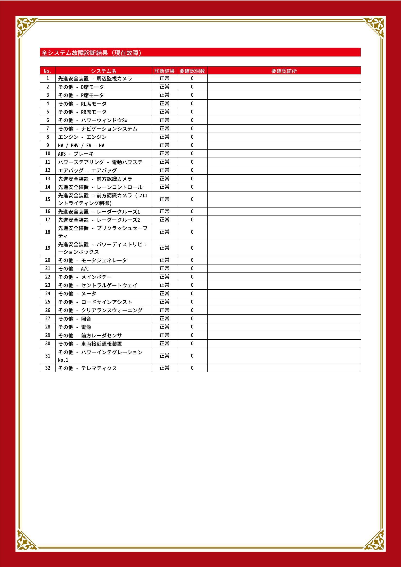 保証項目 | 3ヶ月・3000km以内ならエンジン、トランスミッション、ハイブリッド、ステアリング、ブレーキの各機構における主要項目を無償修理(または交換)いたします。 |