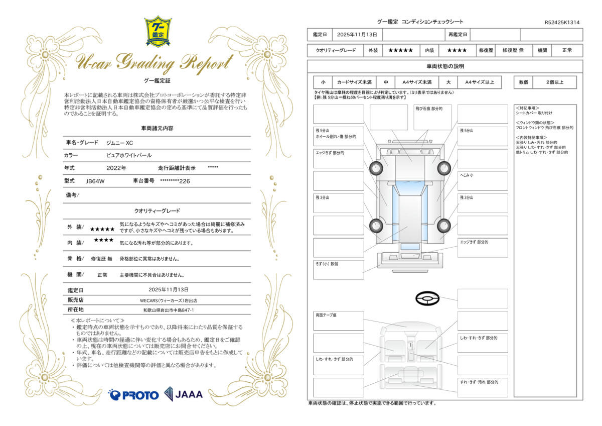 [保証付]:1ヶ月・1000km ※いずれか早い時期が保証適用の条件となります。 納車後1ヶ月・1000km以内は36機構・343項目を保証いたします。詳しくは販売店までお問い合わせ下さい。 |