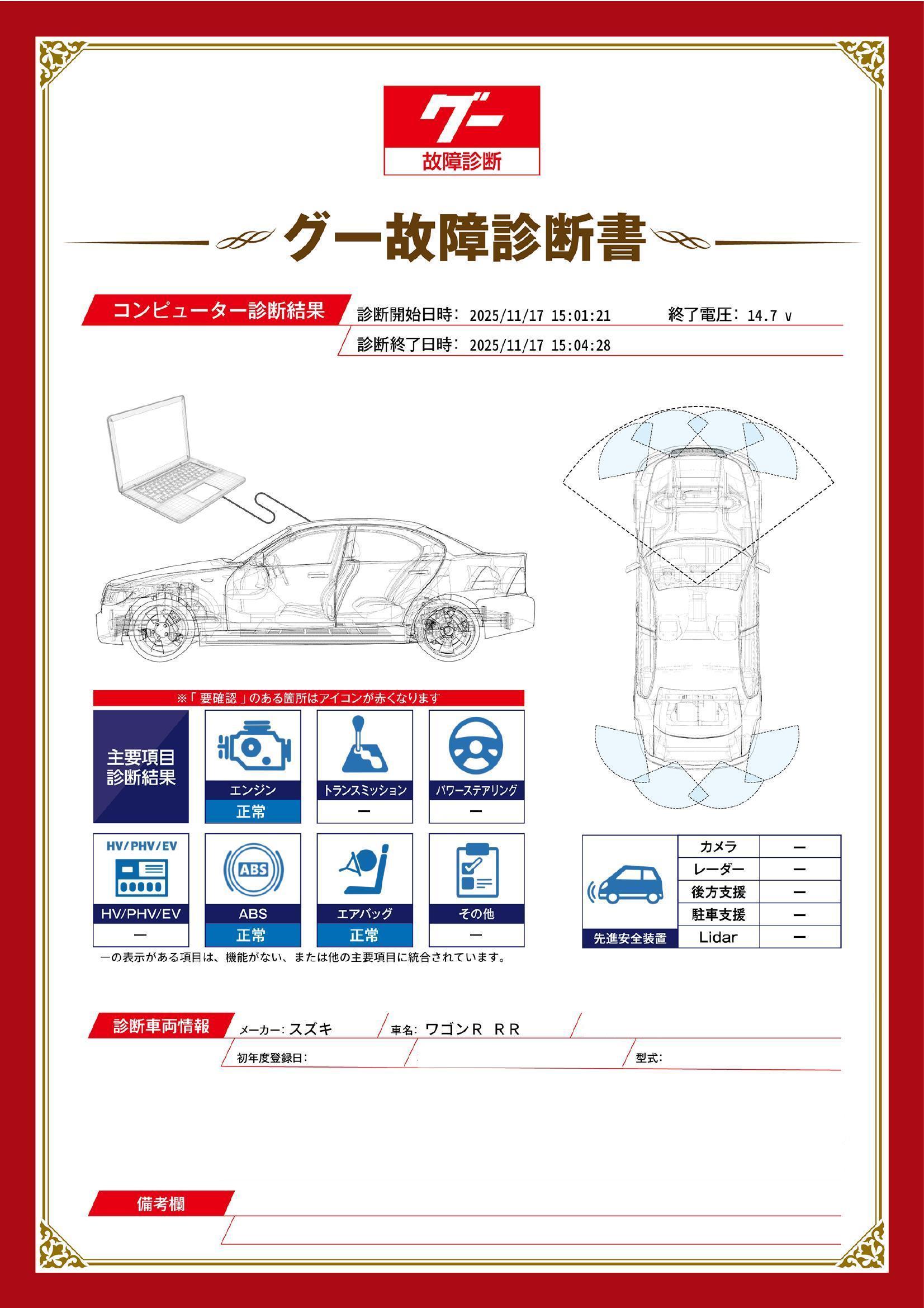 保証項目 3ヶ月・3000km以内ならエンジン、トランスミッション、ハイブリッド、ステアリング、ブレーキの各機構における主要項目を無償修理(または交換)いたします。