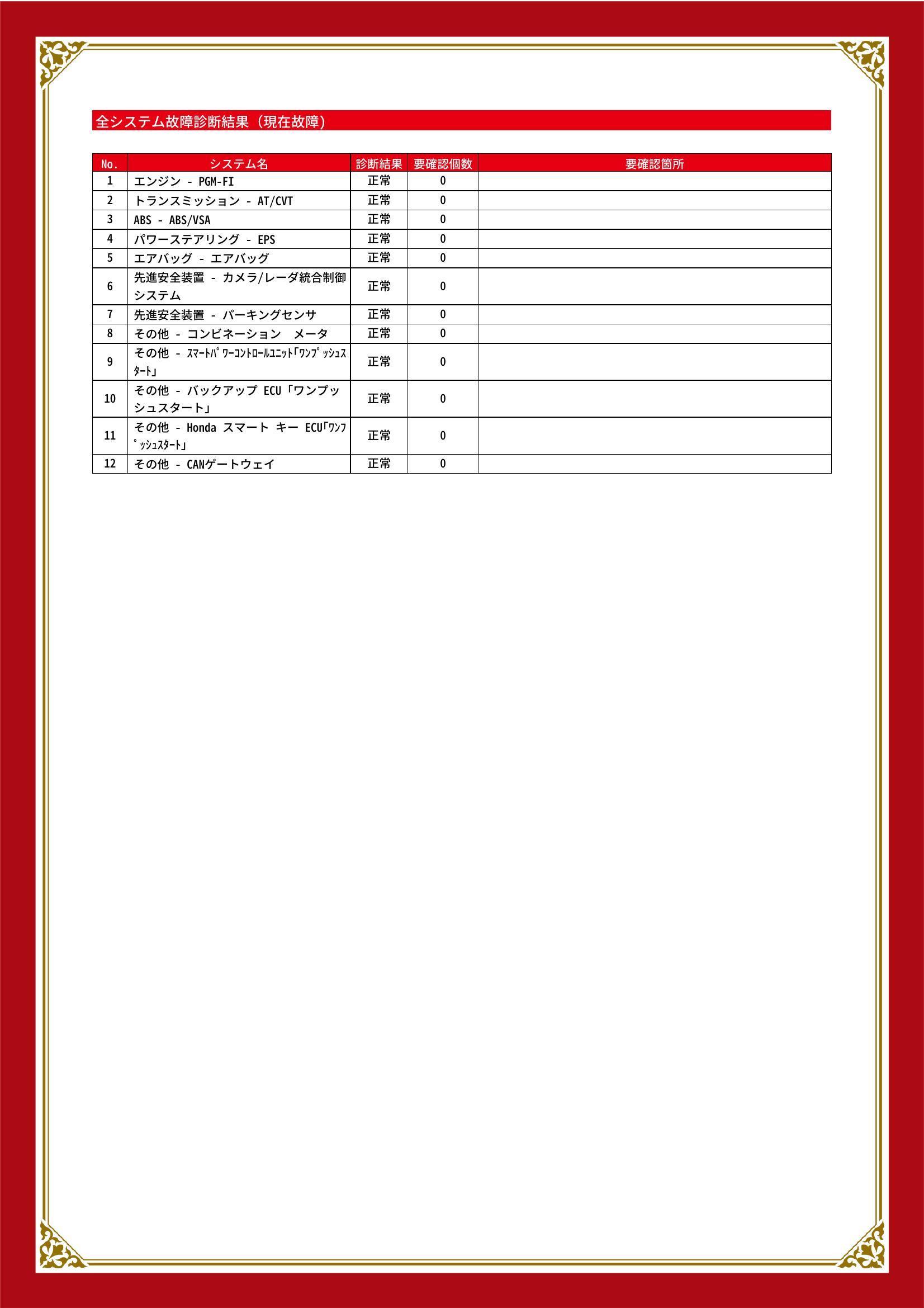 | 保証項目 | 納車後1ヶ月・1000km以内は36機構・343項目を保証いたします。詳しくは販売店までお問い合わせ下さい。 |