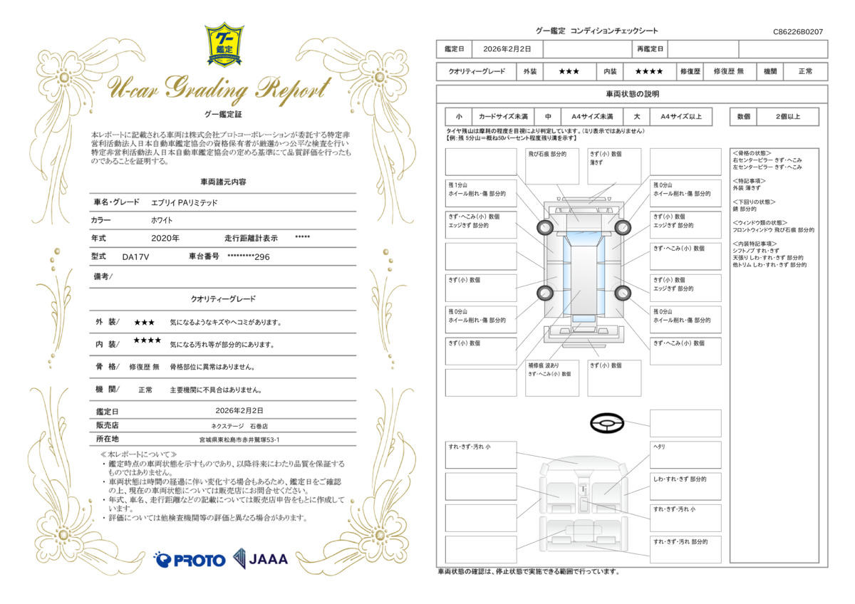 [保証付]:3ヶ月・3000km ※いずれか早い時期が保証適用の条件となります。 ●期間中は何度でも使用可 ※累積上限金額あり ●全国の店舗で対応可 ●最長10年の有料保証もご用意。充実の保証範囲(401項目)1・2・3・10年からお選びいただけます※車両により加入条件が異なります |
