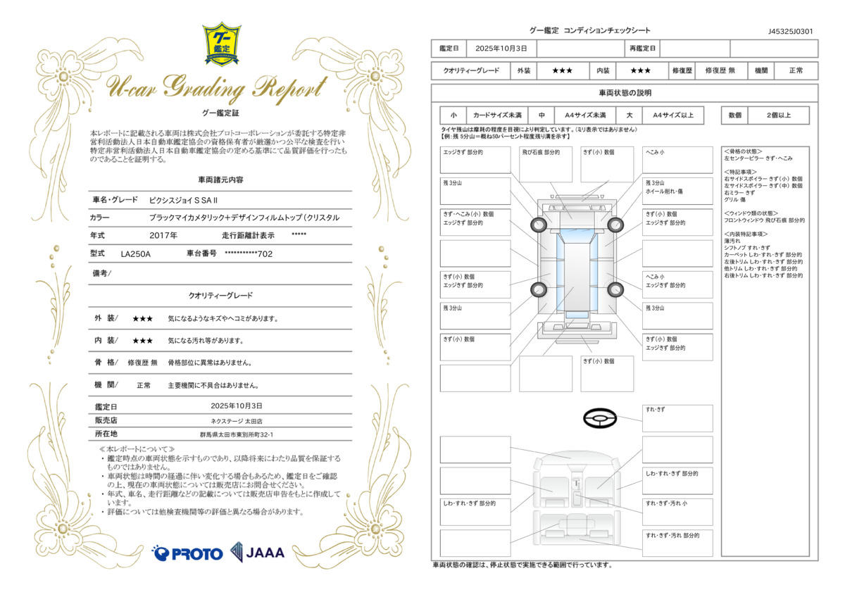 弊社では、全車『修復歴なし』のお車のみ取り扱っております。専任バイヤーによる厳選した仕入れの後、入庫後の車両チェックを行い、ネクステージが認定した高品質な中古車をご提供しております。 15