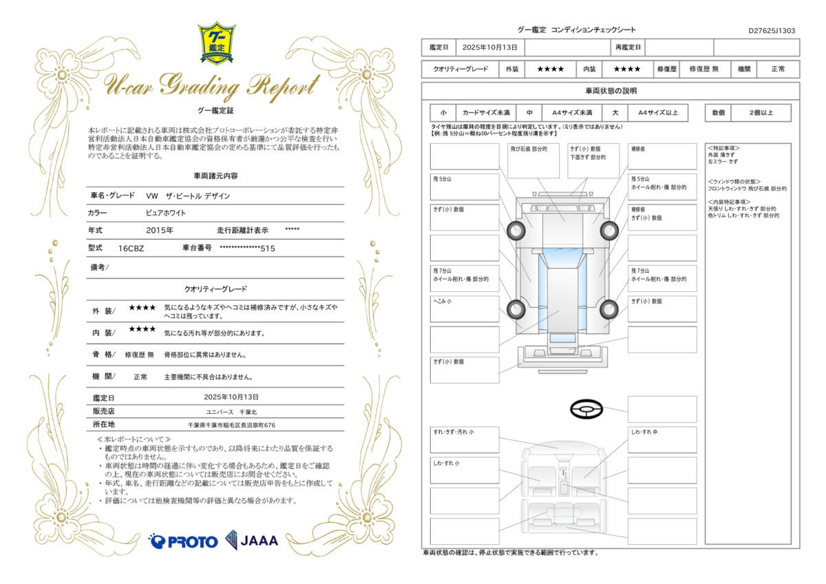 保証項目 | 1ヶ月以内なら走行距離無制限にてエンジン、トランスミッション、ハイブリッド、ステアリング、ブレーキの各機構における主要項目を無償修理(または交換)いたします。 |