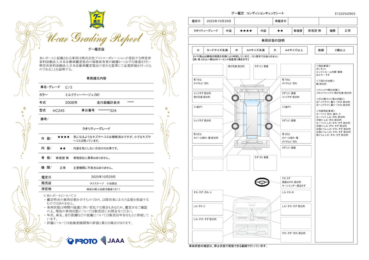 | 保証項目 | 3ヶ月・3000km以内ならエンジン、トランスミッション、ハイブリッド、ステアリング、ブレーキの各機構における主要項目を無償修理(または交換)いたします。 |