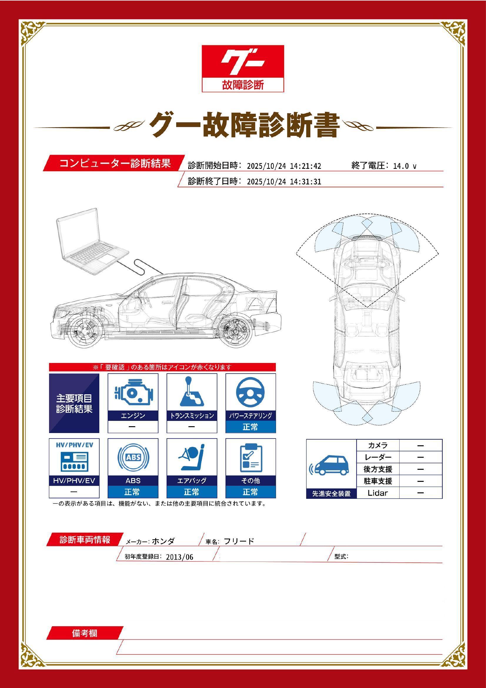 保証項目 3ヶ月・3000km以内ならエンジン、トランスミッション、ハイブリッド、ステアリング、ブレーキの各機構における主要項目を無償修理(または交換)いたします。