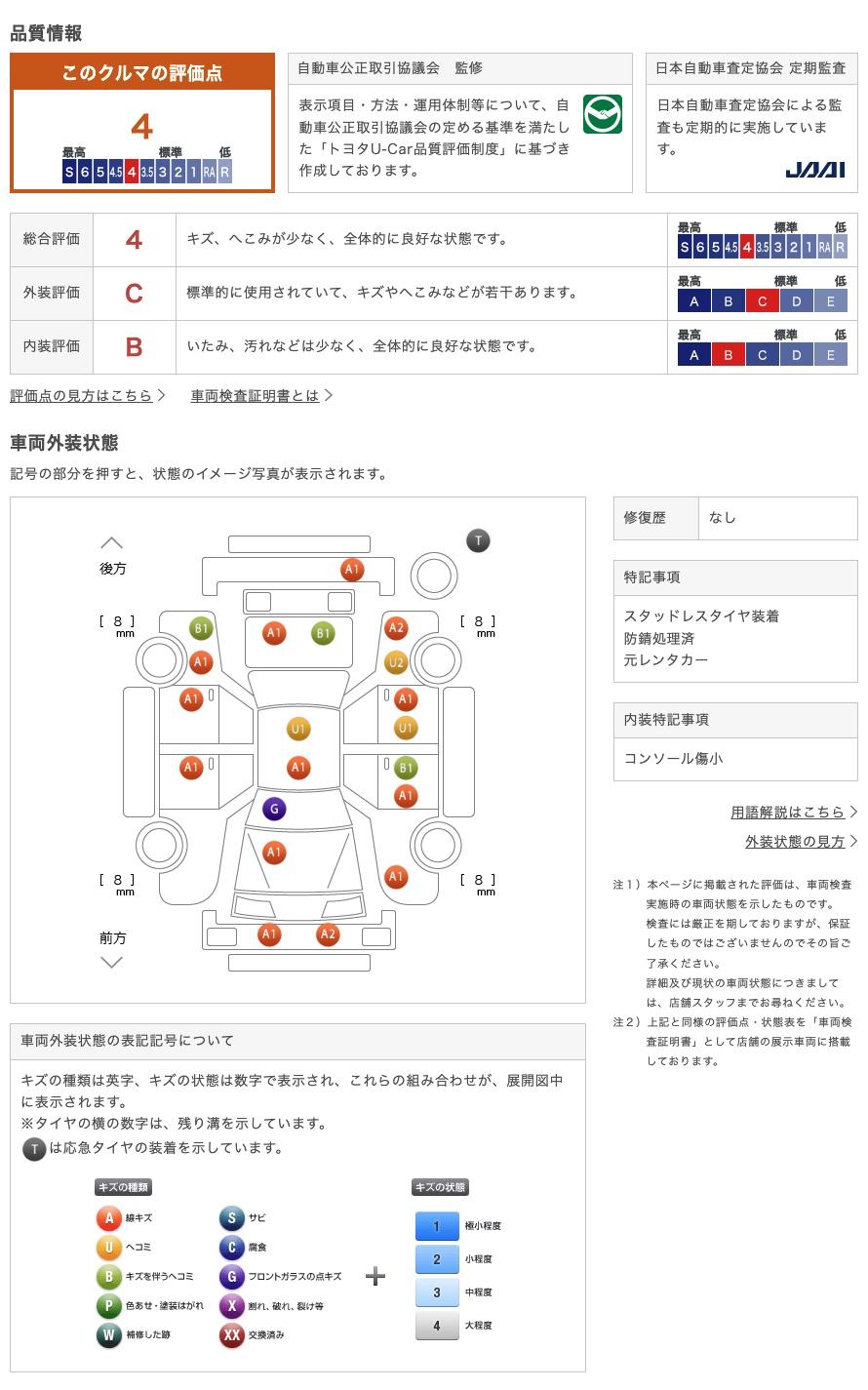 • また、修復歴・法定整備・保証の有無ならびに詳細内容につきましても、必ず各販売店にご確認いただきますようお願いいたします。