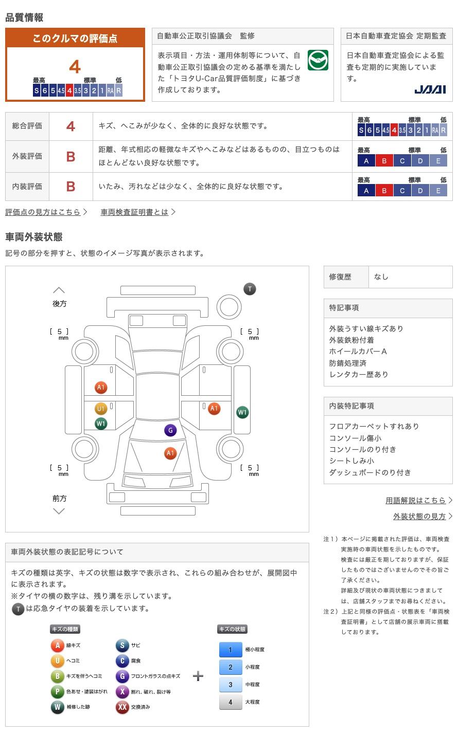 • また、修復歴・法定整備・保証の有無ならびに詳細内容につきましても、必ず各販売店にご確認いただきますようお願いいたします。