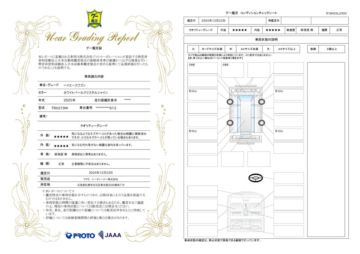 | 保証について | [保証付]:2030(令和12)年8月まで・100000km ※いずれか早い時期が保証適用の条件となります。 |