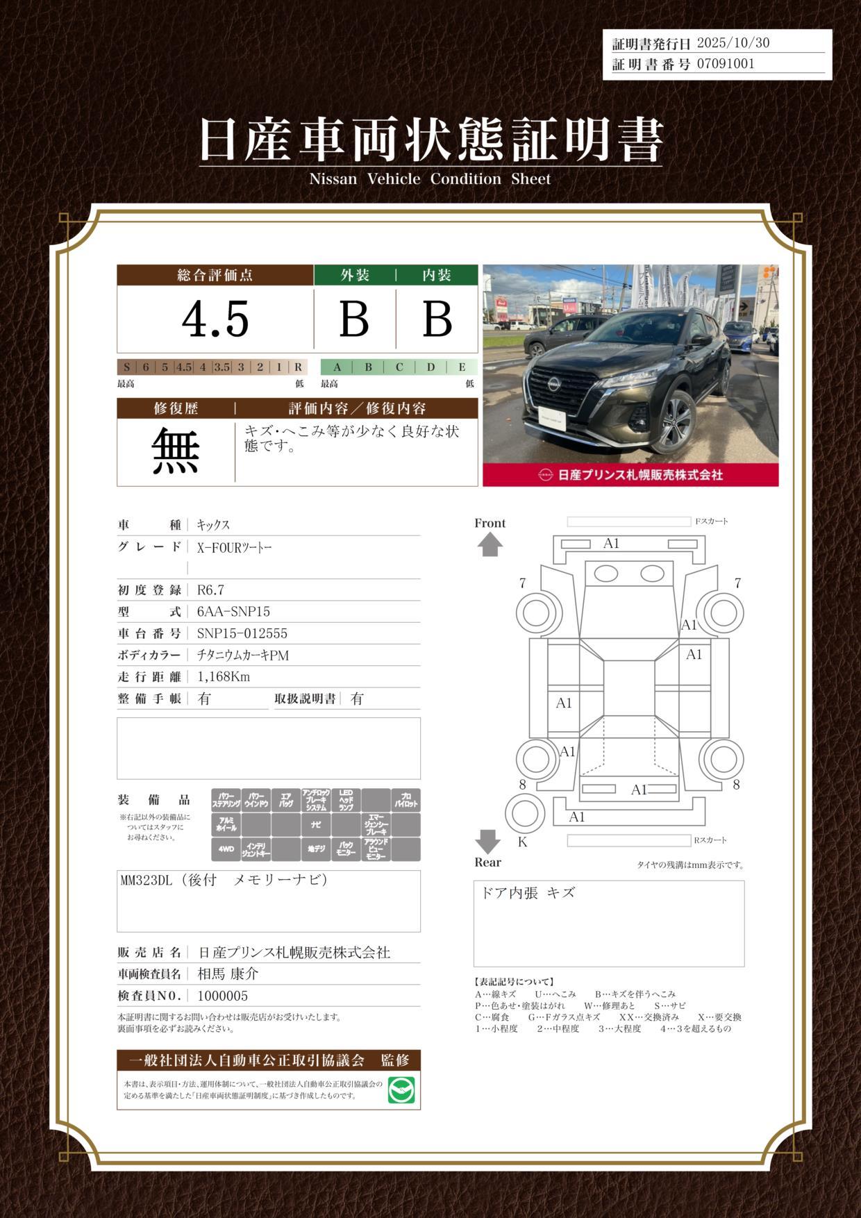 日産の中古車は保証が充実しております。全車”ワイド保証””ワイド保証ライト”が付いております。駆動系・電装系パーツなど、油脂類・消耗品を除く殆どの部品が保証対象です! 6