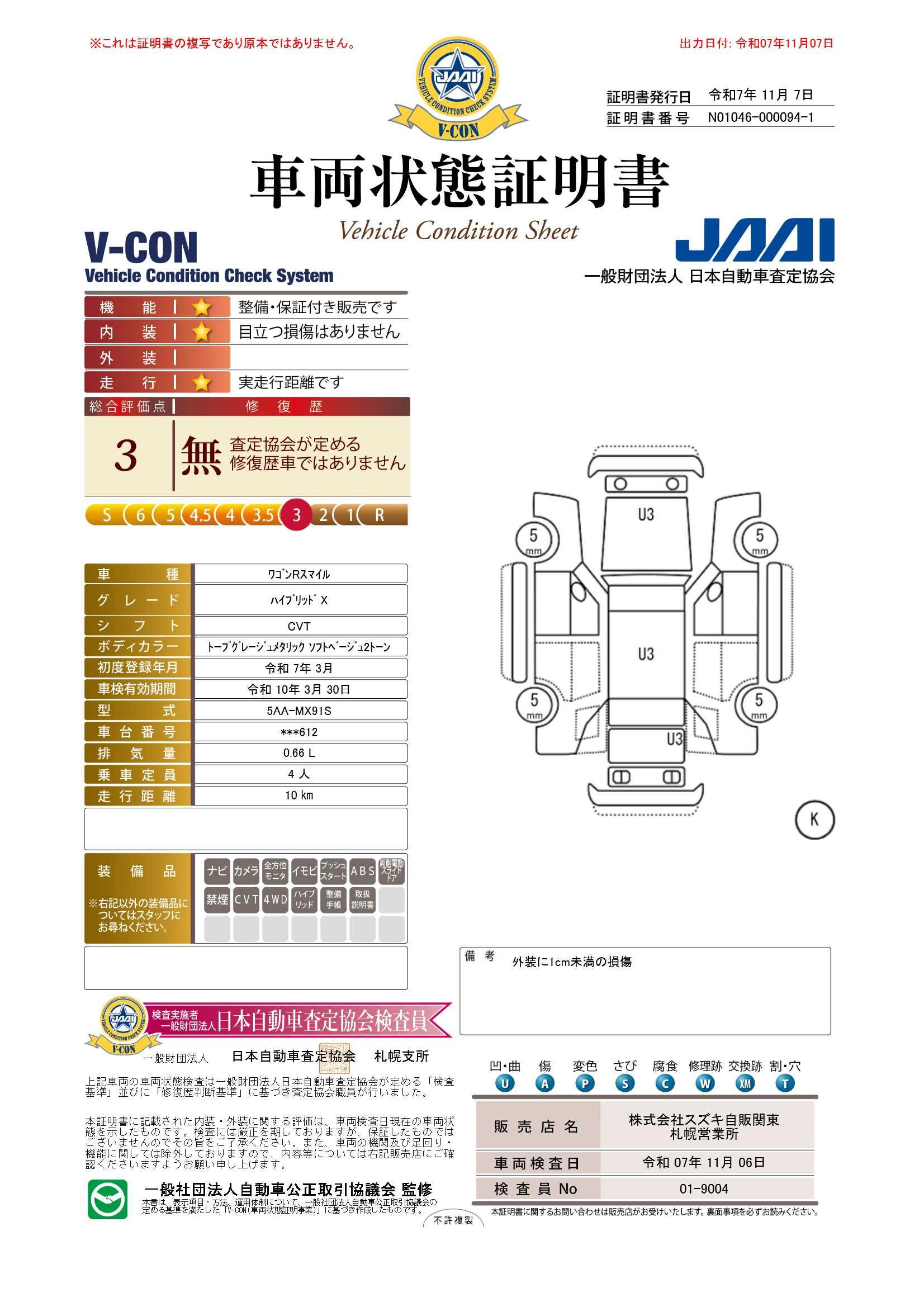 | 保証について | [保証付]:2028(令和10)年3月まで・60000km ※いずれか早い時期が保証適用の条件となります。 |